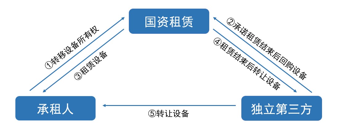 混合租赁是将融资租赁及经营租赁的混合使用,以达到为企业融通资金的目的。该模式下,租赁公司将企业设备买入,并采用混合租赁方式将设备租赁给企业,企业通过设备款实现融资,以获得其他投资收益。租赁期结束,通过引入独立第三方将设备回购,并出售给企业的方式将所有权转移给企业。