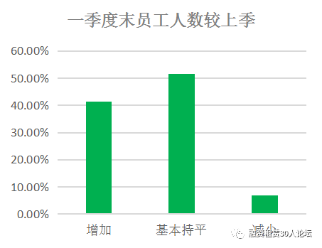 重点提示:41%被调查企业第一季度人员数量较上季度有所增加。