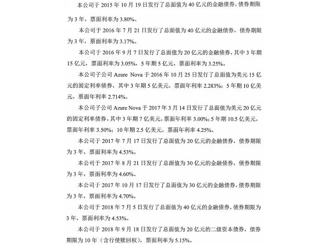 截至2018年6月末,公司已获得包括所有五大国有银行、股份制银行、大型城商行以及部分农商行的超5200亿等值人民币的授信额度。