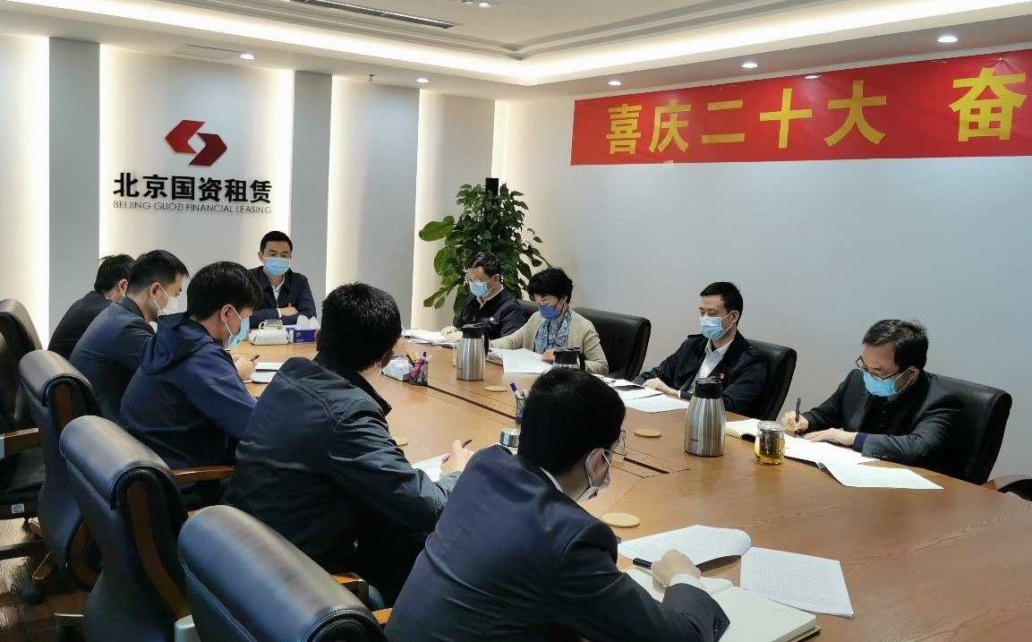 赵东伟表示,国资租赁要把学习宣传贯彻党的二十大精神作为当前和今后一段时期的首要政治任务,认真按照上级党委部署,制定宣传贯彻党的二十大精神工作方案,迅速掀起学习宣传贯彻热潮。要深刻认识党的二十大报告的重大政治意义,围绕党的二十大擘画的战略蓝图,坚定“双聚焦”战略和绿色发展方向,打造“绿色租赁”品牌,努力在推动首都经济社会高质量发展上展现更大作为,在服务和融入新发展格局上取得更大突破,在推动绿色发展上实现更大进展,在推进全面从严治党上取得更大成效,在实现第二个百年奋斗目标新征程上贡献更多国企力量。