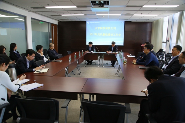 3月28日,北京国资租赁公司组织召开了2017年党风廉政建设工作会,传达学习北京国资公司2017年党风廉政建设工作会议精神,部署国资租赁公司2017年党风廉政建设和反腐败工作。会议由公司党支部书记、总裁费颖同志主持,公司纪检委员、经营班子成员、各部门负责人及全体党员参加会议。